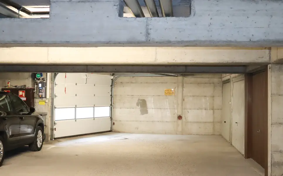 Ein Garagenabstellplatz und zwar eine der in die Wohnanlage integrierten Garagenboxen mit dem eigenen Schwingtor und Stauraum hinter dem Autoabstellplatz innen sowie ein Kellerabteil sind im Kaufpreis inbegriffen.