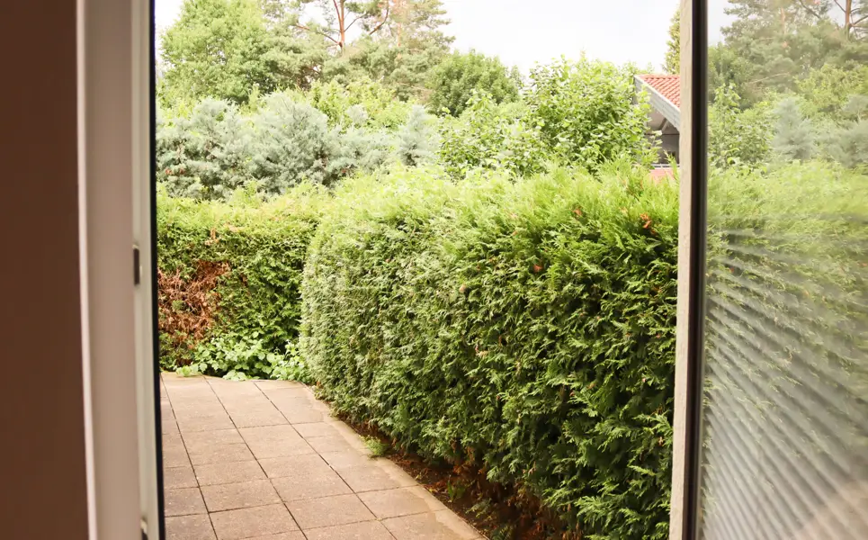 In den Garten gelangt man aus dem Schlaf- sowie aus dem Wohnzimmer aus. Durch die vorteilhafte Ausrichtung nach Südwesten, ist vor allem im Sommer mit vielen Sonnenstunden zu rechnen.